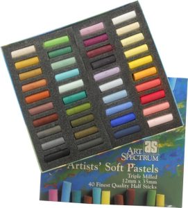 If you need a good starter set of soft pastels this set of 40 half sticks by Art Spectrum is very useful. They are available from good art supply shops including www.softpastel.com.au